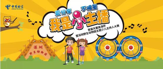 深圳电信联合深圳野生动物园,共同举办【我是小主播】少儿主持人大赛,参加比赛,免费逛动物园,还有机会上电信电视。10强小选手有机会参与共24期的动物园专题节目拍摄,更有终极大奖——深圳野生动物园合家欢年卡,等你来拿!