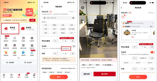 针对家具、全身镜等大件物品的“量不准”问题,顺丰推出“拍照识别体积”功能(目前该功能仅支持带激光雷达的苹果手机用户使用)。用户从顺丰速运APP点击「寄快递」,即可轻松使用手机扫描物品,完成非接触式体积测量。在测量精度方面,该功能实现了单边平均测量误差控制在10毫米以内,并基于测量结果,创新融入AR技术,实现通过AR展示物体线框,且支持拖动线框矩形,动态计算物体体积,帮助用户获取更准确的运费预估。