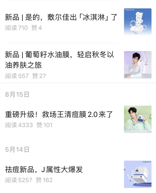 从剂型角度看,次抛包装还有一个隐藏优势:精准控制用量,避免浪费,同时保证每次使用的新鲜度。对于含有活性成分的护肤品来说,这种"一次一支,用完即弃"的形式,既保证了功效稳定性,也符合当下消费者对"精致护肤"的需求。因此除了白膜,在清痘精华、抗皱精华等新品上,敷尔佳也将次抛形式应用到了极致。