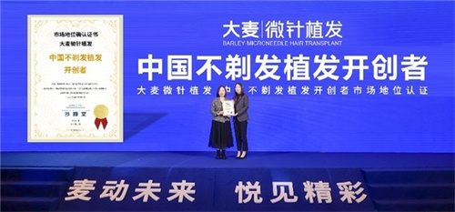 全球权威咨询机构弗若斯特沙利文(Frost & Sullivan)为大麦微针植发颁发市场地位认证证书