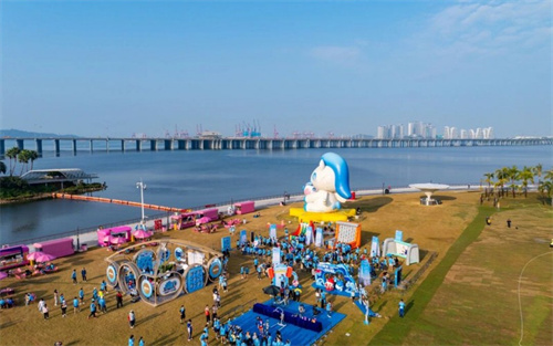 欢乐氛围浓厚,现场惊喜多多,活力满满。本次活动突破传统体育赛事边界,设置“跑步+嘉年华”双主题,通过多场景构建,展现前海国际化城市新中心的活力风貌。其中,迎新跑主会场设置有各种“向前”与“向海”精美拍照打卡物料,成为跑者热门合影点。同时,围绕前海桂湾公园、前海石公园等设立5公里的闭环跑道,让跑者一边尽情奔跑,一边观赏、游览前海优美的滨海风光。亲子互动乐园、美食市集等区域吸引了众多市民围观参与,现场氛围热烈,好评满满,共同构建出欢乐、活力的新年奔跑场景。“科技体验区”则汇聚了机器人、人工智能等领域的多家前海科技企业,将前沿技术转换为公众可体验的趣味项目。同时,前海自有IP“向前”“向海”与知名萌宠IP“嗨萌马”联动亮相,开展人偶巡游与打卡活动,吸引众多家庭参与。