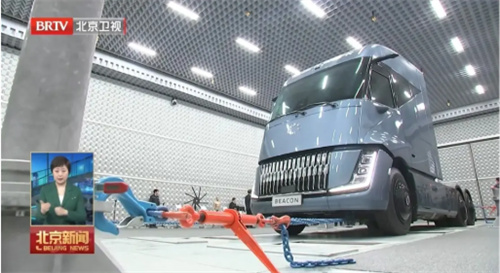 座谈会期间,三省市党政主要领导实地察看了国家氢燃料电池汽车质量检验检测中心实验室。考察中,北汽福田正在受检的氢燃料重卡与纯电动轻卡等新能源产品引起了领导们的浓厚兴趣。作为京津冀燃料电池汽车示范城市群建设的重要成果,北汽福田新能源产品以正向研发的平台技术为支撑,在零碳运输领域实现关键突破。原定四分钟的安排,因领导们频频驻足、详细询问技术研发与产业应用情况,最终延长至二十分钟。领导们对北汽福田新能源产品连连点赞并给予“高度评价”。